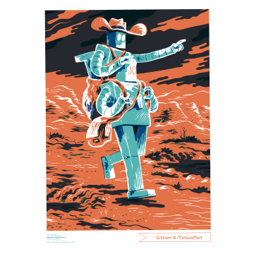 Plakát vytištěný u příležitosti vydání třetího příběhu o dvou tyrkysových robotech.